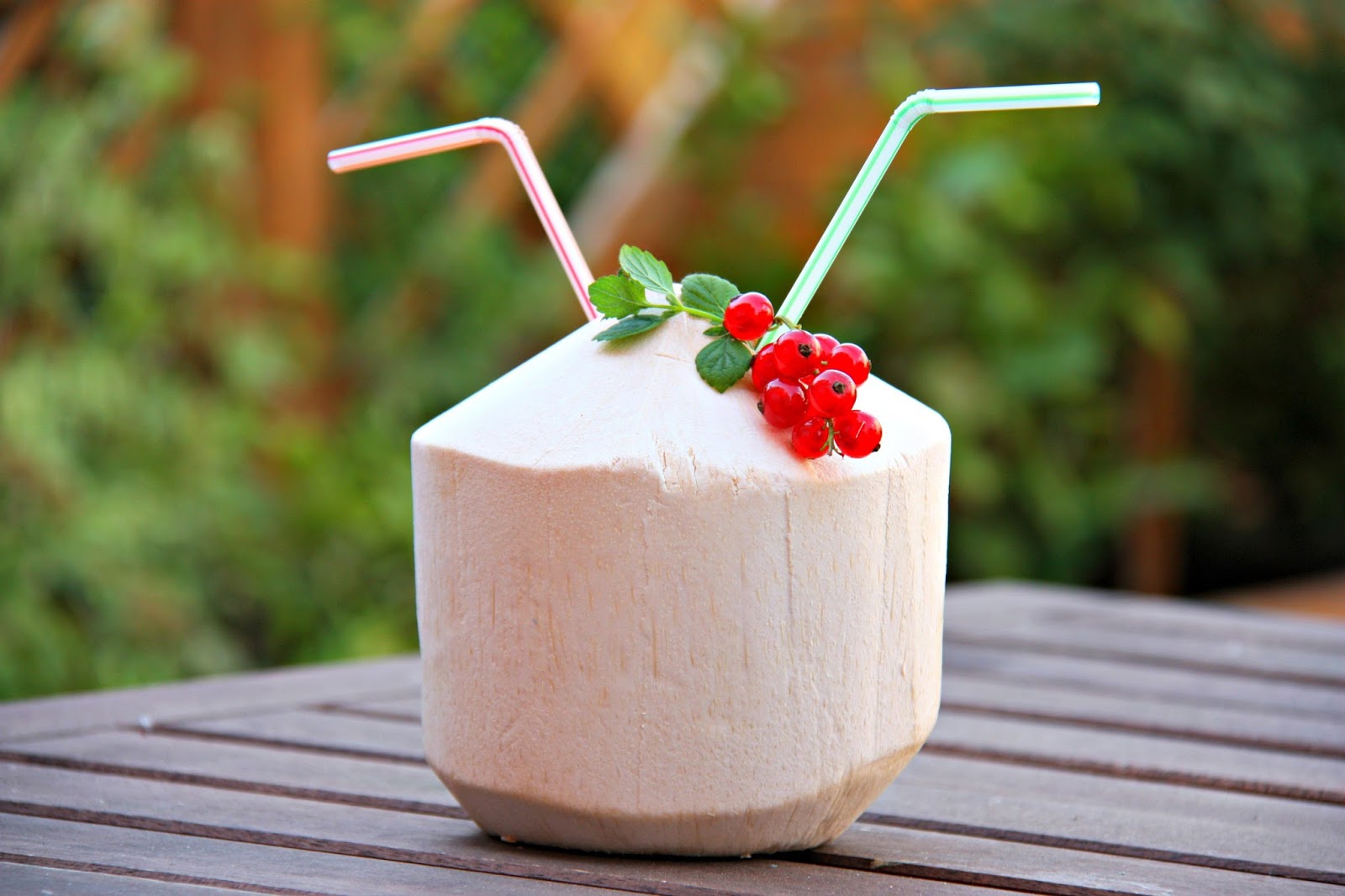 Základem tohoto receptu je mladý kokos. V našich obchodech je to poměrně novinka (nebo alespoň já jsem ho zahlédla teprve před nedávnem) a jde o kokos, jehož slupka ještě neztvrdla dlouhým zráním, a je jen osekaná od svrchní světlé vrstvy. Je plný úžasné voňavé kokosové vody, chcete-li mléka, a po vypití si můžete ještě užít i vnitřní měkkou dužinu – třeba právě do tohoto receptu.