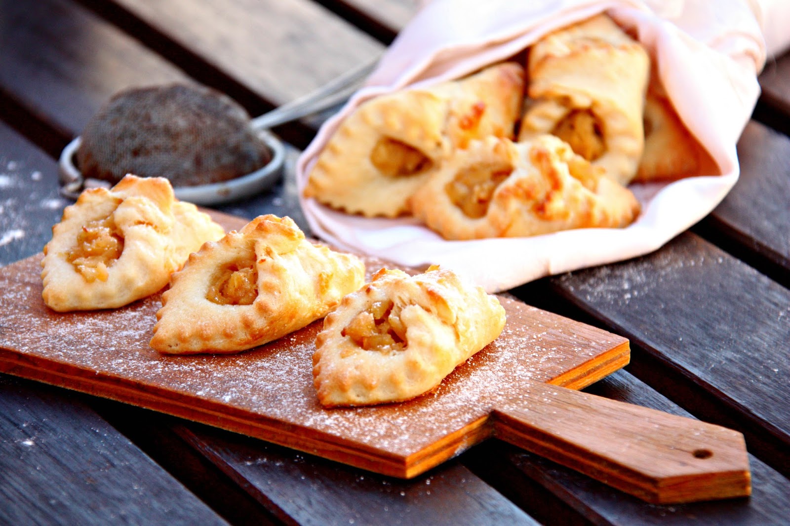 Těsto však chuťově patří mezi ta méně sladká, na náplň případně stačí i jen jablka samotná, bez cukru, takže bych tyto šátečky považovala za poněkud lehčí verzi sladkosti, ač se recept tuku ani cukru zcela nevyhýbá.