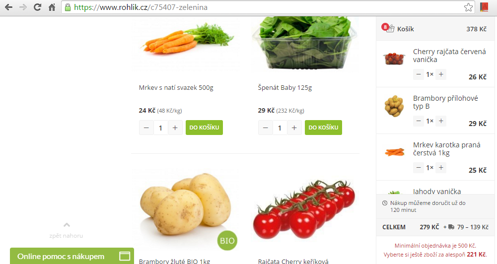 využila jsem možnosti expresní dopravy, kterou Rohlík garantuje do 120 minut od